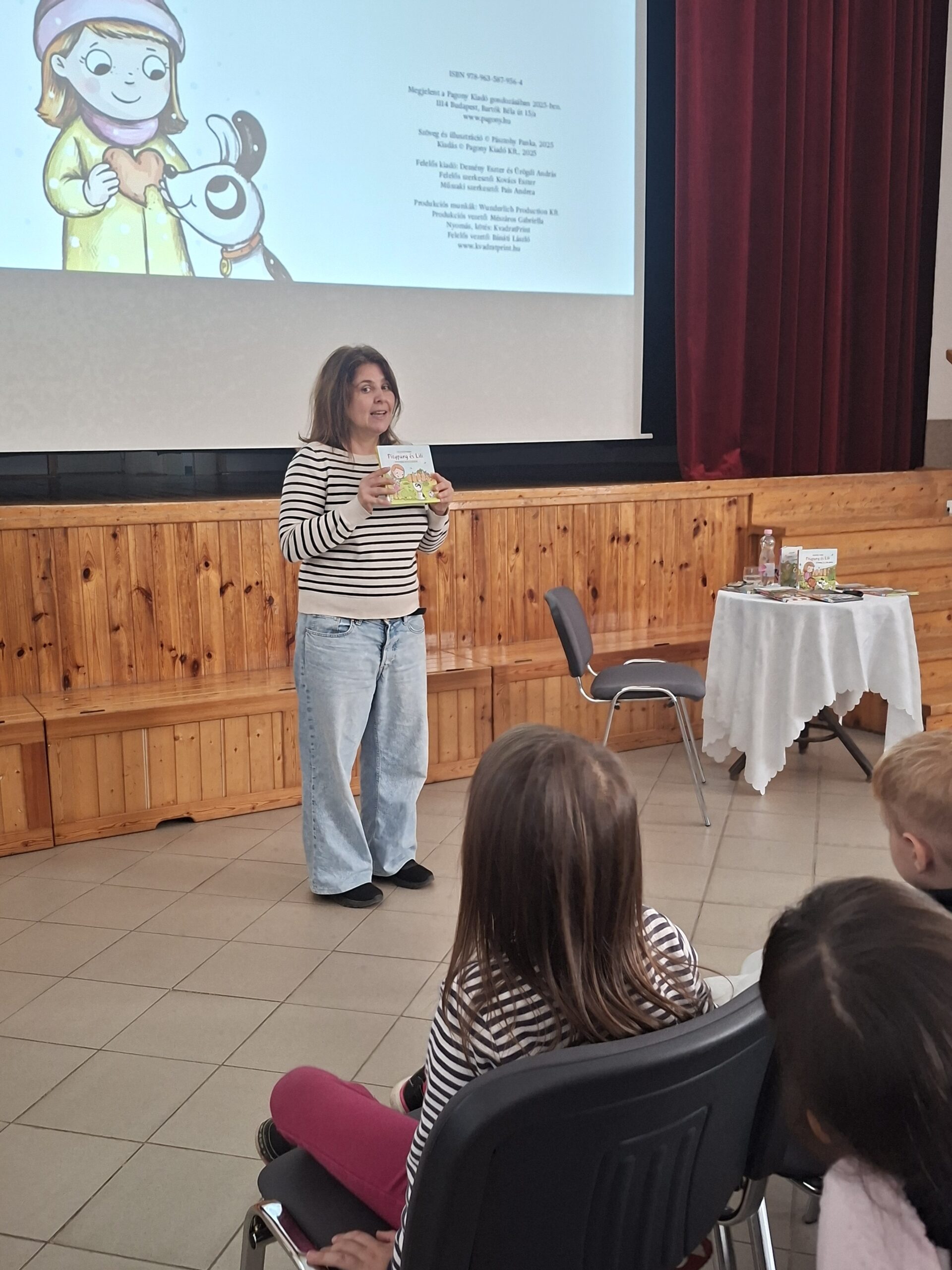 2025. október 8-án Pásztohy Panka gyermekkönyv író- illusztrátor volt a vendégünk. A találkozón az írónő több mesét is olvasott a gyerekeknek, és az a megtiszteltetés ért bennünket, hogy meghallgathattuk az írónő új mesekönyvét, ami ezután fog megjelenni, címe: Pitypang és a mézeskalács. Az előadás végén az írónő ajándékkal kedveskedett minden gyermeknek.